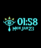 An elegant, simple watchface with a taste of The Legend of Zelda: Breath of the Wild featuring the Sheikah eye symbol. Features: -Time and Date -Battery life indicated by the triangles at the top of the symbol -Bluetooth connection status indicated on the eye -Support for all pebbles!