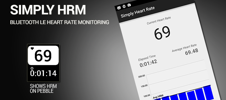 Displays heart rate from a Bluetooth LE heart rate sensor. Also displays activity time. Requires Android companion app and Bluetooth LE HRM. There is not an iOS companion app at this time.