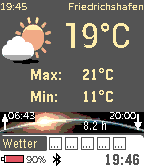A smart watchface with a lot of information gathered from internet. Rather additive the time, day, date (in nearly any language), the bluetooth connection as well as the battery state is shown. InfoPanels are switched in 60 sec delay, by tap event or by accelerator control. Implemented Panels show the weather, the sun/ wind/ air pressure/ wind speed forecast of your current location, stock/ currency values and up to 2 news feeds/ google alerts. The watchface is fully configurable in it's settings dialog. Have fun!