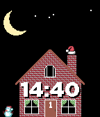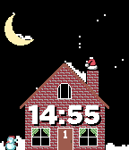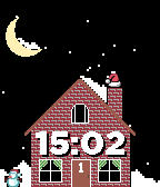 Get in the Christmas spirit. A simple watchface with an animated snow shower. Hours of mesmerizing fun watching the flakes fall, one by one, building a wondrous winter scene. The snow is random so no two snowfalls are the same (display resets when snow reaches the top). We even got some pseudo pebble physics going on here! The battery level is shown by the closing blind in the attic and the day of the month just below the roof. Shake your pebble for... Number of sleeps until the special day (configurable) which is VERY important, Date, Full battery status, Bluetooth connection status.