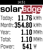 Keep track of your solar energy production from your Pebble. Contains a view with detailed information, and a graph displaying your generated power per 15 minutes. Works with SolarEdge inverters and requires a SolarEdge API key to read data from your online dashboard. Development on this app continues, if you encounter any problems please contact me using the "email developer for support" button below. * This app is not affiliated with SolarEdge in any way. I just created it to keep track of my production.