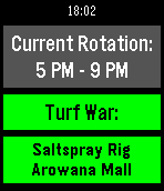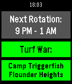 UPDATED 07 FEB 16 Splatime Monitor is a daily utility app that reports the current and upcoming maps in rotation for the Wii U game 'Splatoon'. Using pebble.js and the splatoon.ink API, the app reports the current maps and the maps for the next 2 rotations, mirroring the information available at splatoon.nintendo.net. DISCLAIMER: Since this app pulls data from an external API, it will not function properly if it is disconnected from your phone or if your phone cannot connect to the internet. With the v2.2 update, much of the app's backend has been restructured to handle the current structure of the Splatoon.ink API's response data, and the app's image handling has been updated to work under current firmware's new bitmap handling. Current features include: - Color distinction for Random and Ranked maps (Basalt only, Aplite support upcoming b/c WOO GRAY) - Shake to refresh maps (The app currently also refreshes its map data any time it's closed) - Autodetection of your local time zone and proper time adjustment - Error handling for Splatfests or splatoon.ink request failures - 100% more WOOMY! For any problems or bugs with the app, please let me know! This is my first watchapp, so I appreciate the feedback. You can reach me through the email link below or you can message me directly on Reddit: /u/greater_nemo. If you'd like to support Splatime Monitor or future apps, feel free to donate at paypal.me/greaternemo . I do my coding in my free time, so any little bit is appreciated. :)