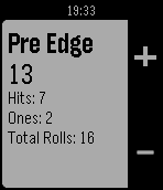A dice roller for the Shadowrun RPG. Button usage: Press up/down to add/subtact one die from pool Long press up/down to add/substract five dice from pool Press select to roll dice Long press select to switch between modes (No Edge, Pre Edge, and Post edge)