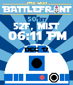 Star Wars Battlefront 501st watchface in color. Tells time, weather, and date.