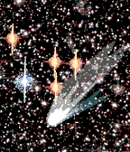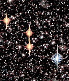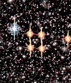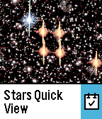 Time shown as large stars appearing on a star field. Hours (blue/white) and 5-minutes (orange) appear in roughly the same positions as on an analog watch. The additional 4 single minutes (orange), for accuracy, appear in the middle. Configuration options to display a large comet in foreground and to vibrate if bluetooth connection lost. Requires Pebble firmware 3.10 or later. Screenshots show: (1) 10:19 (2) 04:52 (3) 09:46 (4) 05:29 (5) 09:53 (no bluetooth) This watchface is published with the designer's permission, and sanctioned by Tokyoflash. The original design found here: http://blog.tokyoflash.com/2014/06/25/stars-watch-galactic-view-tells-the-time/