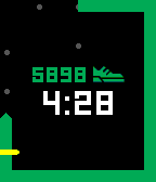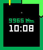 A digital watchface featuring Pebble Health activity data. Follow the progress of your step count on the outer ring. Cross the line when you've passed your current average step count. See your current total step count above the time.