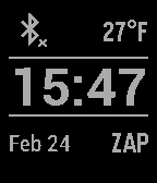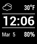 watchface with battery status, location based weather (15 minute refresh), and date. 2.3 Updated images and added charging indicator 2.2 Config file update mod of Simplicity Weather https://github.com/tallerthenyou