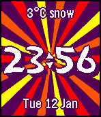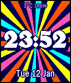 I love TomHol's Happy. This is a rip off which is configurable. You can change the colours, vibrate on Bluetooth disconnect, show date and weather, change font. Send me any suggestions I can add in. Spins on the minute if battery is OK. If low on juice it spins on the hour. Spins when tapped. The number of rays decreases as the battery level decreases. Source is on Github.