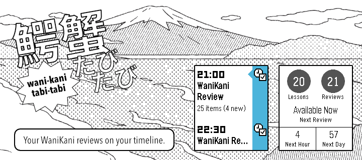 Keep track of your WaniKani review schedule on your Pebble timeline. WaniKani (https://www.wanakani.com) is an awesome Japanese Kanji learning website, and this app will help you keep up with your studies.
