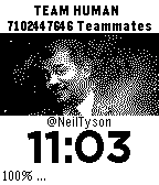 This series of watchfaces for the inexpensive pebble watch show you the current human population* (up to the minute) and much more. New Features in Version 2.01 -59 Watchfaces - Accelerometer triggered Nitro - High Visibility Battery Gauge The Only Team Yankees, Mets, Red Sox, Jets, Patriots, Manchester, Liverpool it's all a construct. Sometimes we need a reminder of the game and what the teams really are. Inspired by gifted philosophers like Joe Rogan and Duncan Trussell. I built an app because my "human teammates" built a watch and then this whole software around it - that lets you make apps. I did it using Pebble's native C based SDK on PebbleCloud using Github. Powerful Community! Creating customized, data-driven watch faces for social good is just something I do for our team. I love our team. I'll be honoring Team Human representatives with custom watchfaces and notifying them via twitter. There is no money in making these FREE watchfaces for me. It's for the benefit of our team. *Calculations made based on estimates from wikipedia