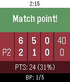 - 2 players - Service indicator - Current score, sets won, total points and break point conversion - Tie break support - Up to 5 sets - Break, set and match point alert - Undo function Download the ‘Padel Score’ app to play a doubles match