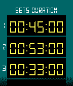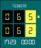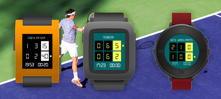 Do you play tennis? Now you can keep track of the score in your Pebble! Tennis Score for Pebble tracks points, games, sets and who is serving. Update the score by pressing a button; undo available. Choose between best of 3 or 5 sets; tiebreak for all sets. Shows current time and match duration. Features: + Menu: - Select best of 3 or best of 5 sets - Select who starts serving - Start match! + Match: Use buttons to track the score. - Up: point to your opponent - Down: point to you - Select: undo last point; as many times as you want - Back: exit to main menu + Score: - Upper row: your opponent score - Lower row: your score - Left time: current time - Right time: match duration in minutes - Asterisk: who is serving +Statistics: Scroll down at the end of the match. - Match score - Number of points won - Match and set duration Give it a <3 if you like it! Thank you!