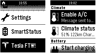 Control your Tesla Model S or X. Start/stop charging, heat/cool your car, you can check in/outdoor temperatures, see your range... Enter Tesla login on the phone through "Settings". Initially the app was made for myself but got a life of its own. You can buy me a beer or help me save for my Model 3: https://www.paypal.me/EdeBruijn :)