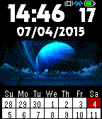 A watchface with the Thetis Moon image from Digital Blasphemy Features a 2 week calendar, and when you shake or tap, see a 5 day weather forecast. Tap again for sunrise, sunset and moon phase. Tap a third time for a compass!