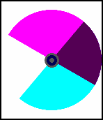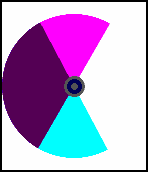 Think of a watch consisting of two colored transparent semicircle discs, one for the minutes in magenta and the other for the hours in cyan. Wherever the discs overlap cyan and magenta mix to a deep purple. Got it? The first screen shows 07:20, the second 11:05, the third noon and the last one 11:27 Now its up to you ...