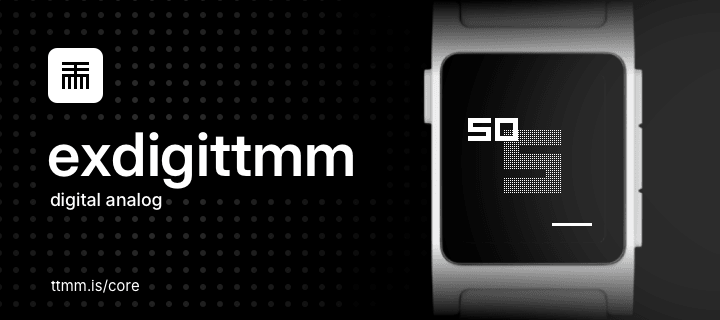 TIC-EXDIGITTMM Analog soul, digital mind. A bold, minimal watchface with a unique analog-inspired time display. Includes hourly vibrations, Bluetooth alerts, and connection status indicator — all in a clean, modern layout. TIC- EXDIGITTMM reimagines the classic mechanical watch in a bold digital form. Instead of hands, it features large, legible numerals that emphasize the gravitational center of time — with hours at the core, and minutes orbiting them, just like in a traditional analog layout. A subtle seconds display draws a horizontal line every five seconds, tracking time’s movement with rhythm and grace. When Bluetooth is disconnected, a simple minus sign appears at the heart of the display — a quiet signal that something's missing. TIC-EXDIGITTMM is so intuitively designed, it feels like it’s always existed. Modern. Minimal. Meaningful. This premium watch face is available for $4.99 plus local taxes. Enjoy a 1-hour free trial to explore all its features before you buy. Secure and easy payment is processed via KiezelPay. TTMM for Pebble watch faces have won top awards for originality and design, including the Special GOOD DESIGN Award, GOOD DESIGN in New Technologies (2017), Silver and Gold A’ Design Awards, and the FWA Mobile Of The Day — celebrating innovation and excellence. Developed by TTMM sp. z o.o. Design by Albert Salamon Programming by SystemD International LP and Gregoire Sage Copyright © 2025 TTMM sp. z o.o. All rights reserved.
