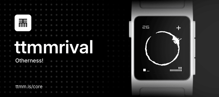 TIC-TTMMRIVAL Otherness! A uniquely styled abstract digital watch face with an original time display and built-in complications. Offers hourly vibration, Bluetooth notifications, and connection status display. Inspired by The Arrival, TIC-TTMMRIVAL honors the film’s core idea: that language is humanity’s most powerful gift. This watchface is a graphic analog dial, where time is expressed through twelve abstract signs — a “hole” for the hour and a “something” for the minutes. Minutes are rounded to the nearest five, with unique behavior: 3 and 8 accelerate to 5 or 10, while 2 and 7 lean back into 0 or 5. What first appears abstract becomes strangely readable — a new visual language shaped from coffee cup marks and hand-poured ink. TIC-TTMMRIVAL transforms randomness into meaning. The dial becomes a ritual: the chaos of the everyday turned into a symbolic, readable rhythm of time. Extras include: + / - to indicate Bluetooth connection Battery icon: two merging squares showing 100%, 75%, 50%, or 25%; a thin line signals low power Steps shown as rectangles, each representing 1,000 steps Our only true rival — and closest companion — is Time. This premium watch face is available for $4.99 plus local taxes. Enjoy a 1-hour free trial to explore all its features before you buy. Secure and easy payment is processed via KiezelPay. TTMM for Pebble watch faces have won top awards for originality and design, including the Special GOOD DESIGN Award, GOOD DESIGN in New Technologies (2017), Silver and Gold A’ Design Awards, and the FWA Mobile Of The Day — celebrating innovation and excellence. Developed by TTMM sp. z o.o. Design by Albert Salamon Programming by SystemD International LP and Gregoire Sage Copyright © 2025 TTMM sp. z o.o. All rights reserved.