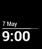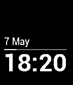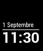 Simplicity watchface with proper Continental Europe date and time format. ★ Now with extreme battery life ★ ★ Now with subtle battery indicator ★ ❤︎ Give it a GO, give it a HEART! ❤︎ Localisation: English French (Français) German (Deutsch) Spanish (Español) Date format: d Month (all languages) d. Month (German) Time format: H:mm (24h) h:mm (12h) By design, automatically displays in all languages that are officially supported by Pebble watch. (Currently: English, French (Français), German (Deutsch), Spanish (Español)) If, in the future, a new official language is added to Pebble watch, it will display correctly in the new language (given the new language is set by the user in the Pebble app (Android or iOS)).