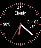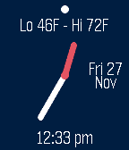 Inspired by Pebble's Tictoc watchface with added weather and date information. - Select colors for hour/minute hands, time markers, background and text items - Select how often OpenWeatherMap.org weather information is updated - Retrieve weather information using GPS or by manually entering location - Option to display today's lo - hi temperatures (+last weather update time) - Option to always display a seconds hand, or battery-friendly alternative to briefly display a seconds hand with a shake - Vibrate on Bluetooth disconnect option - Select from two different font sizes and watch hand widths - Options to display time in digital format and battery percentage If you're enjoying the TICTOC WEATHER watchface, please click the heart above. You may also send feedback using the Support link below.