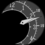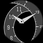The hour and minute markers are on 2 large wheels that tilt towards the viewport such that the current hour and minutes are always visible.
