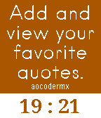 Display the current time and your FAVORITE QUOTES/PHRASES from the authors you love, right in your watch. Just add your favorite quotes and the watchface will display it in a nice way. The Time&Quotes watchface also includes a calendar to display the current month when you shake your arm. Features: * Battery dots to display battery status. * Configurable 12/24 Hours Display. * Current Month calendar. * Automatically refresh quotes. Please report any bug or error. Also any suggestion will be welcome.