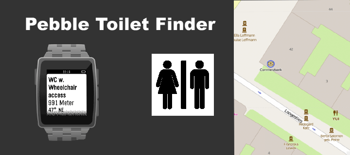 ToiletFinder shows you the direction, distance and street address of the nearest public toilet within a square mile around your current position. It displays also if the toilet is accessible to wheelchair drivers. As you move towards the station it recalculates the distance. The app relies on Open Street Map Data. So if you find insufficient or incorrect information please go to openstreetmap.org to correct this for you and future users. Please help to keep public location data free and donate to http://donate.openstreetmap.org/
