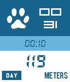 Simple trackmeter for my dog travelling...;) UP ... Day/Trip SELECT ... Stopwatch/Battery LONG SELECT ... Reset DOWN ... Meters/Steps/K.Meters (only for Basalt platform!)