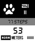 Simple trackmeter for my dog travelling...;) UP ... + Sensitivity DOWN ... - Sensitivity LONG DOWN ... Battery/Stopwatch SELECT ... Light LONG SELECT ... Reset Sensitivity: Low/Normal/High/X-Hi (only for Aplite platform!)