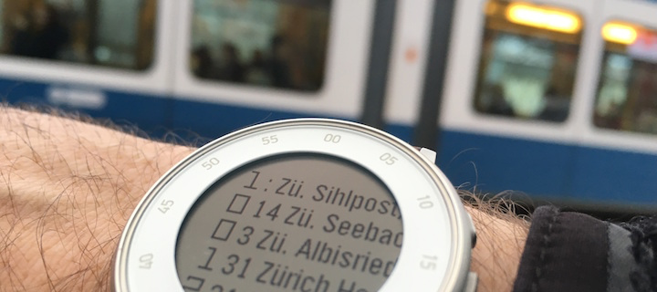Tramlin is a rudimentary Pebble-port of Wemlin, the successful Swiss public transport app. For the closest 10 stops, it shows you the next 10 departures of the various lines at those stops. Shaking reloads, while the Select-Button shows the next-closest stop.