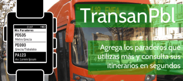 English: Santiago de Chile's Public Bus System (Also known as Transantiago) schedule checker. Add your favorite bus stops using the app's config webpage and check when the bus you need will stop using your Pebble. Done using Pebble.js and using the information of Wireless IQ. Nearby bus stops info using Google's API Banner's photo author is https://www.flickr.com/photos/riveranotario/ Español: Itinerario de Buses del Sistema de Transporte Público de Santiago de Chile (También conocido como Transantiago) . Agrega tus paraderos favoritos mediante la configuración de la aplicación y luego revisa cuánto falta para que pase el bus desde tu Pebble. Realizada usando Pebble.js y con la información de Wireless IQ. Información de paraderos cercanos usando (Momentáneamente) la API de Google Places. El autor de las fotos en los Banner es https://www.flickr.com/photos/riveranotario/