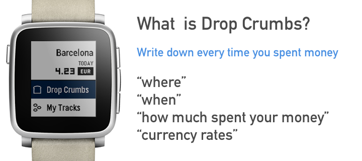 Fantastic Travel Currency App! by Pebble CEO If you like my app could you please give me ❤️? :D ==Travel Crumbs New Features== 1. App Glance Mode : Total Spent Money / Today Currency Rates 2. Offline Mode : You don't need to internet! 3. Support for Spanish, French, English, Italian and German is coming soon TravelCrumbs helps people spend their money while traveling. It shows the exchange rates of the current location while it keeps tracking the locations using GPS. As you travel from country to country, all you need to do is to set your currency in your own country. And wherever you are in, TravelCrumbs will detect your location and automatically change the currency. In case you travel domestically TravelCrumbs will be still helpful for tracking where you have visited and checking the amount of money you spend each time. Users can easily input via voice or button control and check the price directly. They can also see an overview of their total expenditure for the day and the places that they have visited. TravelCrumbs is able to detect any value that you have said. We have the accurate exchange rates and location datas for over 39 countries worldwide. **Voice Input Guide** e.g 102.77 USD -> Say "one hundred two dollars and seventy seven cents" or "one hundred two point seventy seven" ==KIEZEL PAY== Travel Crumbs is no longer free, a one time purchase using KiezelPay at $2.99 is required to continue using Travel Crumbs after the 2 days free trial has elapsed. Thank you. email : [email protected] twitter : @travelcrumbs