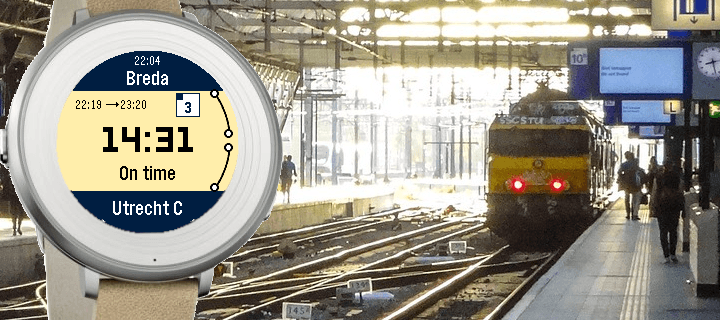 A Pebble smartwatch app that shows live train information from Nederlandse Spoorwegen (Dutch Railways), including countdown to your next train, departure times, and platform information.
