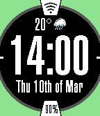 Another watchface for the Trek fans. This is a bit simpler, though has a variety of images to display. View the time in large numbers, or set it to random (with one of the smaller date/time formats), to move through 13 images (currently) - they swap every minute - if when selecting the option it doesn't switch immediately, wait for the next minute change. An image can also be selected permanently - to view time, select one of the date formats that include time. If you have a fave, and its not there, just email me and i'll put it in the mix. The outer ring changes colour according to the battery charge level. Battery number is shown in small text at the six position. Bluetooth state is at the 12 position - it'll turn grey if BT is lost. Flick to display a seconds ring (it'll remain there for 40 seconds). Minutes are also shown by the black gap in the dark grey ring.