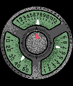 Watchface using "hands" to show time movement across 3 windows in 12/5/9 format, meaning: 12 hours (top), 5 10-minutes (left) and 9 single minutes (right). The center window can optionally be used to show seconds. There is a choice of 6 background colors. Animation shows 7:47:00 in the 6 color choices. The following image shows 9:28 (no seconds). Designed by Peter Fletcher, who has designed watches for Tokyoflash and a number of the faces I have published. The watchface is published with his permission.