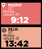 Now supports - Spanish, French and German. Displays local and dual date and time; forget about timezones and daylight saving, TripTime do all for you. Support the project to unlock weather info! Spanish Muestra la fecha y hora en local y dual; olvídate de los husos horarios y horarios de verano, TripTime lo hace todo por ti. ¡Colabora con el proyecto para desbloquear la información metereológica! French Affiche la date et l'heure locale et le double; oublier les fuseaux horaires et l'heure d'été, TripTime faire tout pour vous. Soutenir le projet pour débloquer info météo! German Zeigt lokale und Dual Datum und Uhrzeit; vergessen Sie über Zeitzonen und Sommerzeit, TripTime tun alles für Sie. Unterstützen Sie das Projekt, um Wetterinformationen freizuschalten!