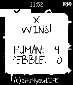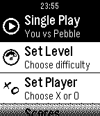 Would you like to relax a little? Do you have to wait for a few minutes before your meeting? Why not play a game with Tris? Choose among 4 difficult levels and try to beat your Pebble! Simple, fun and Quick!
