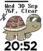Turtle Time Time, Date, Weather, Battery Bar, BT disconnect double vib, & BT disconnect image. Every 30 minutes Turtle Time loses health. Your attention is what makes him Happy & Healthy! Tap or shake to show Turtle Time you care! (After a shake or tap, give TurtleTime a moment to react.) For the Celsius Version: https://apps.getpebble.com/applications/56e828ce6f37d4ca8100000f Tamagotchi, Virtual pet, Digital pet. donations [email protected] paypal