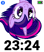 Twilight Sparkle from MLP: FiM. Includes battery and bluetooth. Everything can be customized in the Pebble app. Check out my other watchfaces or send in requests @ cyberpon3.net Original Image: http://dashiesparkle.deviantart.com/art/Vector-152-Twilight-Sparkle-10-526273670
