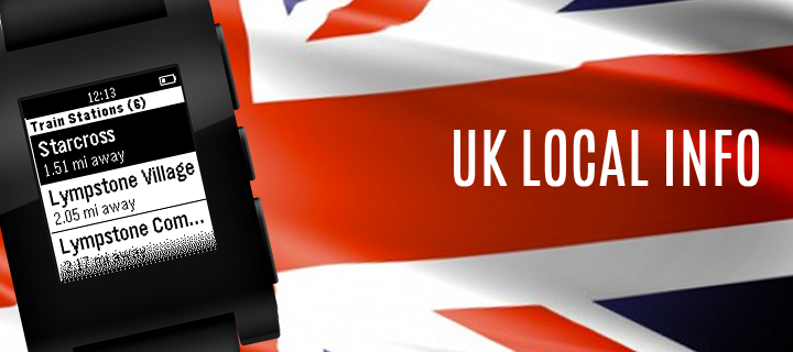 UK Local Info provides you with immediate access to information relevant to where you are right now in the UK, including facts about the local area, your location information (postcode, grid reference and more), weather information (current conditions, temperature, tomorrow's forecast and sunrise/sunset), property value information, crime statistics and details of nearby train stations, cash machines, fuel stations, supermarkets, pharmacies, bars, pubs & restaurants/take-aways. Note: You can use this app outside of the UK, but the amount of data available will be limited. Tip: long press the select button on any menu screen to reload the data (useful if you're moving around).