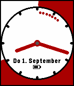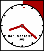 Watchface für die wesentlichen Dinge im Leben - Uhrzeit - Datum - Batteriestatus - Schrittzähler Der Schrittzähler am äußeren Rand verwendet die Minutenskala jede "Minute" entspricht 100 Schritten. Nach 6000 Schritten kommt es zum Überlauf, daher erscheint im inneren Bereich des Ziffernblatt jeweils ein Punkt für eine Runde (=6000 Schritte). Die Beispiele zeigen also: 3.800 Schritte, 7400 Schritte, Marathon