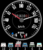This watch face like vintage car speedometer. The BT lamp represents the Bluetooth state. Fuel gage represents battery gage. The weather information of every three hours represents icons. This watch face like Vintage car speedometer. The BT lamp represents the Bluetooth state. Fuel gage represents battery gage. You can change 4 type watchface in config page. You can change 3 type weather icon in config page.