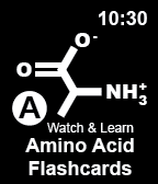 Watch & Learn Flashcards show the structures of the 20 common amino acids and their 1-letter code on the front. A flick of the wrist turns the card to the back, showing the name, 3-letter code, polar/nonpolar, ion characterization, and pH. Amino acids change every 30 seconds. *This watchface is meant solely for studying and not for cheating* comments? [email protected]