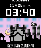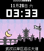 This watchface is to express weather information (including hourly data of cloud rate, precipiation, temperature and AQI) as funny figure, showing as a picture of a city. Right now it is only support the weather resource in China。 这是一个将天气预报资料图象化的表盘。 V2.0支持城市剪影自制,安卓配套程式下载: V1.1可存取版 http://pan.baidu.com/share/link?shareid=3427554331&uk=3422589443 采用了每小时预测共48小时(2天)资料。预测的资料图象化后,随着时间由右向左移动,到达现在所处的时间(以太阳或月亮的位置表示)。 时间可参考下方的时间格线,每格是两小时。 画面主题是城市的剪影(所在省份省会)。 主题画面上方有一横条细线,代表上次更新到现在的时间,参考时间格线,每格2小时。 现在时间代表的太阳或月亮会随着时间而上升与下沉。 天空随着一天的6个时段而变化颜色(每小时渐变)。 天空上端是云层厚度,云层越厚就遮蔽了天空与太阳、月亮。 云层下表现的是雨量,雨量越大,雨就会下到地面来。 中间的小云朵高度,表现了当日的高低温,并出现在当日高低温的时间点(高低温云朵略不同)。 城市下方的雾霾则象征了空气污染AQI的程度。AQI值越大,空污越严重,雾霾就越弥漫覆盖整个城市。 设定页可选择以GPS或地图点选来设定城市。 画面右上角增加GPS显示: 无图形表示地图点选; 实心图标表示使用GPS且定位成功; 空心图标表示使用GPS但定位失败(但使用上次定位成功的位置)。 V1.3以后 可以配套程式同步(目前仅)安卓手机系统日程,可以显示一个最近未到期日程,及最多2个已到期日程。以小飞机方式呈现出其时间点,并于到点时振动及标题提示。 (若新安装未进行日程同步,则系统内定一个装饰性小飞机,同步后即消除。) 配套安卓APP: WW_widget V 1.4 : http://pan.baidu.com/share/link?shareid=1789677664&uk=3422589443 (安装后请将小部件安装于桌面,必要时请重启手机,将自动同步最近日程,或按部件上时钟手动同步。) 这个表盘所想呈现的不是对气象资料精准数据的了解,而是以简单化、图象化、连续化,全观化、趣味化的方式来接受气象资料,并做为您短期(24小时)内日程的参考。 程式已设定: 震动提醒:整点、断线。 无扰时段:06-22时。 气象更新:每小时整点或按右键离开后按左键返回。更新会有天气提示。