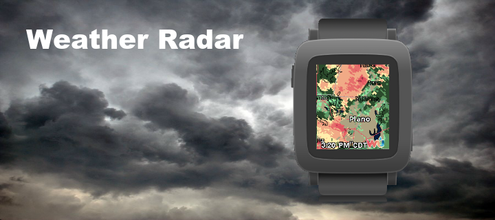 This app displays your local weather radar. It uses Weather Underground for its data. You will need to get a free key from them to use this app. You can get your key at http://api.wunderground.com/api. When the apps loads it will display the current radar. Press the middle button to see the past 4 radars and the current radar in animation. Please note this is not stored it goes to WU each time. A short press of the top button will go back one radar frame. A long press will increase the zoom by 10 and reload the current radar. A short press of the down button will go forward one radar frame. A long press will decrease the zoom by 10 and reload the current radar. Enter the WU key and default zoom level on the configuration page. If you like this app please heart it.