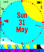 Simple watchface with date and weather info. The hands are discreet on the outside so don't obscure the information being displayed. Options are available for temperature units, whether to show temperature, weather, battery and bluetooth indicators, vibration alerts for when bluetooth disconnects, hourly or daily forecast and various options for the battery indicator. Supports date in the following languages: Bulgarian, Byelorussian, Chinese, Croatian, Czech, Danish, Dutch, English, Estonian, Finnish, French, German, Greek, Hungarian, Icelandic, Italian, Japanese, Lithuanian, Norwegian, Polish, Portuguese, Romanian, Russian, Slovak, Slovenian, Spanish, Swedish, Turkish, Ukranian