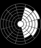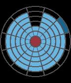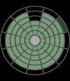 A relatively simple watchface. The hour appears in the traditional analog position. Minutes stack up, building to the next 5-minute in traditional analog positions. PM indicator appears in the center. Hours, minutes and PM indicator colors are configurable. Screenshots show: 2:57PM, 3:27AM, 2:57PM, 2:24PM, 6:14PM