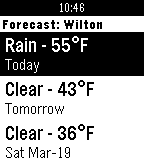 Webtron Weather is a simple watchapp that will detect your location and give you a simple 3 day outlook. Middle click on any of the days and get a detailed look at that days weather.