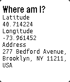 Pebble Round 2This app shows you your current latitude, longitude and approximate address.