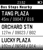 Bus Arrival Estimated Timing (SG). Now, you can choose your destination and get reminded to alight! Perfect for those who prefer to catch a quick snooze. ;) Basic Usage: - Choose your bus stop - Shake to update information, otherwise, information is updated every minute. - Select the bus service you're boarding - Select your preferred stop to alight - The app will now go into monitoring mode, and display the remaining distance to your destination. Your watch will vibrate continuously when you are reaching until you exit from the monitoring screen screen or WMB?. Credits: - LTA - busrouter.sg