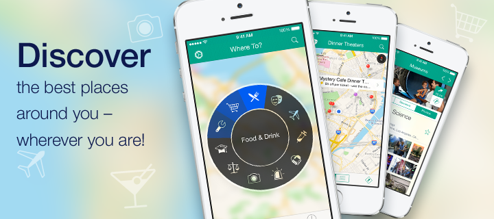 Find the best places around you — wherever you are. Where To? for iPhone finds the closest and best rated places to eat, shop, party, and relax. Use your Pebble Time to reach your destination. This Pebble companion app displays the direction and distance so you can keep your iPhone in the pocket while walking or driving.